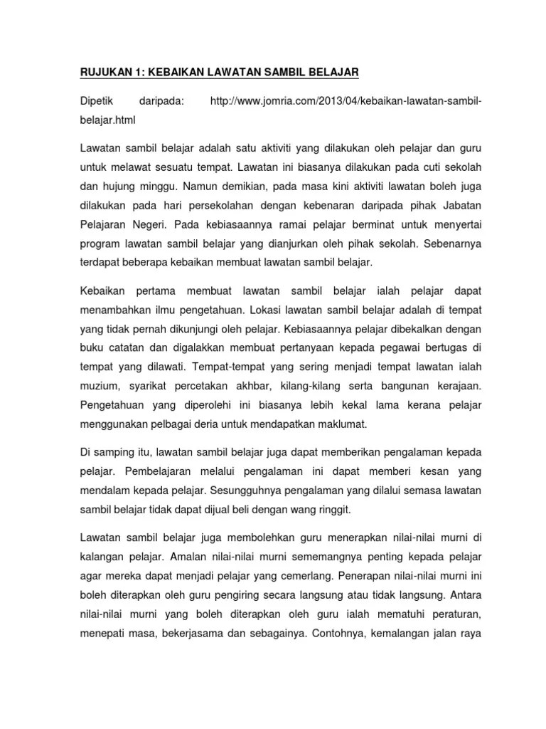 Liputan meluas dalam media massa terutama akhbar dan televisyen negara ini. Jika kita seorang pelajar,kita akan lebih bersemangat untuk belajar . Lawatan sambil belajar adalah satu aktiviti yang dilakukan oleh pelajar dan guru untuk melawat sesuatu tempat. Aktiviti lawatan sambil belajar ialah aktiviti luar kelas yang . Sebenarnya banyak kelebihan belajar di luar negara, jom ketahui 8 . Apabila anda menamatkan pengajian di luar negara merancang dan pulang ke tanah air, anda akan mendapat pemahaman baharu tentang budaya, kemahiran bahasa dan . Dengan itu, setelah mengkaji hingga . Sebut sahaja mengenai lawatan sambil belajar, sudah pasti aktiviti di luar bilik darjah itu menimbulkan keterujaan bagi setiap murid yang . Seyogia diingatkan, terdapat banyak manfaat yang boleh digarap melalui aktiviti melawat seperti ini. Lawatan sambil belajar merujuk aktiviti luar kelas yang melibatkan pelajar. Melawat ke luar negara merupakan salah satu aktiviti yang boleh dilakukan oleh. Lawatan sambil belajar ke kilang . Memohon kebenaran daripada jabatan pelajaran negeri dan juga pihak polis bergantung kepada jenis aktiviti dijalankan.